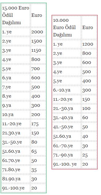 - Turnuva sonunda en iyi 100 oyuncu 10.000 Euro'luk ödül havuzunu paylaşacak.